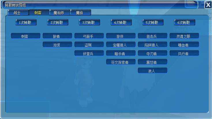 刺客系:一转精灵刺客→二转旅者(远程,安全跑图)